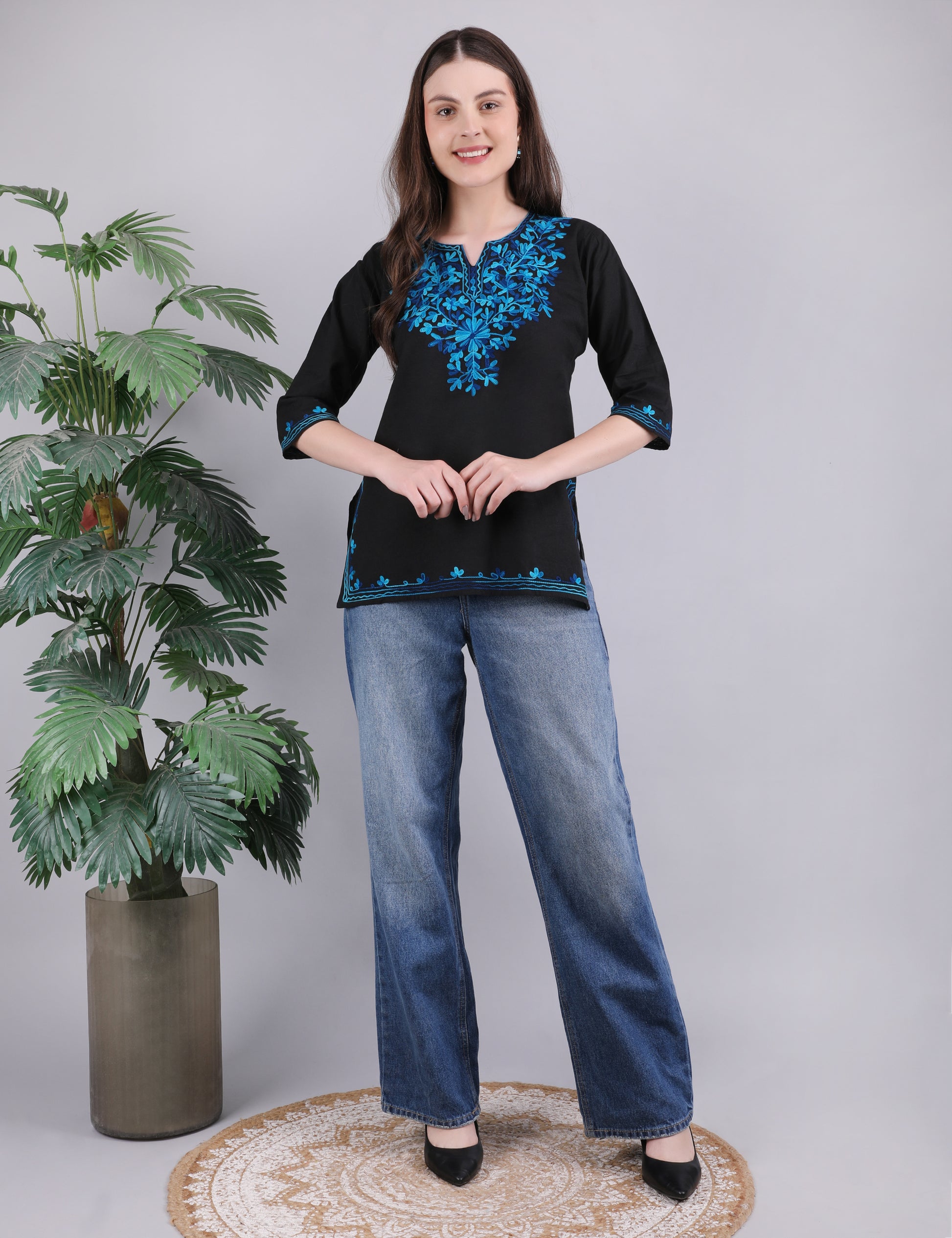Women Cotton Kashmiri Embriodered Short Regular Fit Kurti